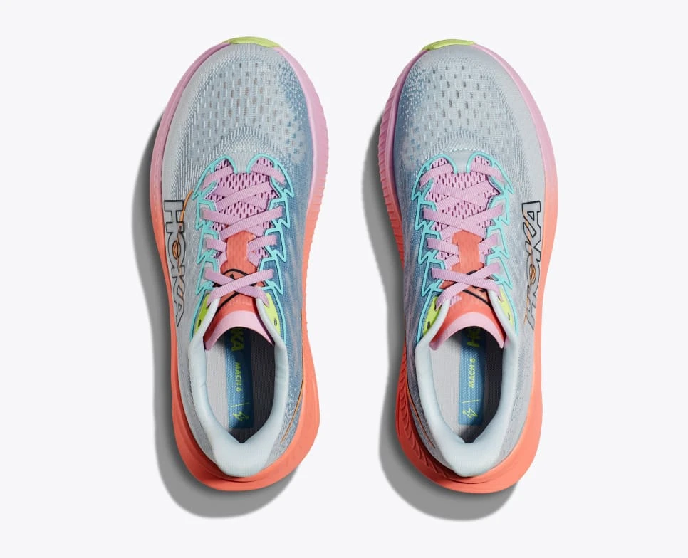 Behold HOKA’s lightest, most responsive Mach to date. This lively trainer has been fine-tuned for extra energy return with a super critical foam midsole and updated for enhanced durability with strategic rubber coverage in the outsole. Implementing speed focused design details throughout, with a new creel jacquard upper with zonal breathability and an internal gusset to deliver the foot-hugging comfort required to set your next PR.
